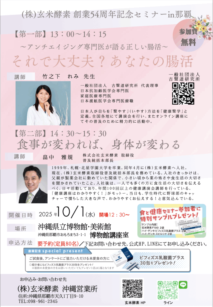 開催日時:(株)玄米酵素創業54年周年記念セミナー